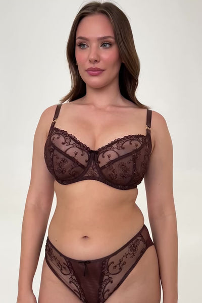 - Miękki haftowany biustonosz w brązowym kolorze to bestsellerowy fason;